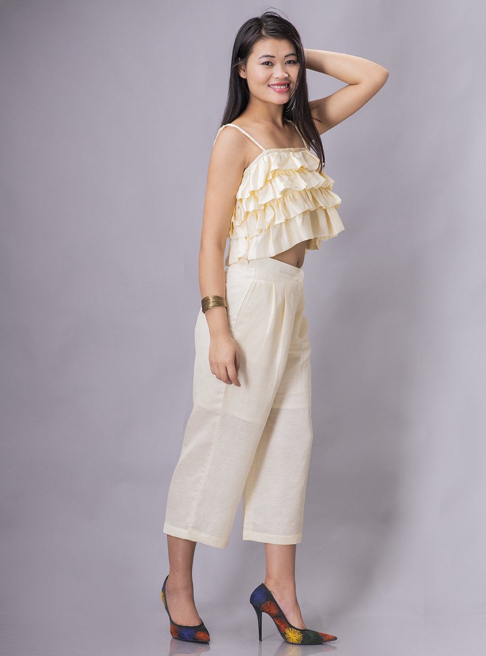 This georgette satin cropped shirt paired with a baggy pant enhances the look with its soft feel and elegant tailoring. A vibrant print makes this exclusive outfit stand out in the crowd.