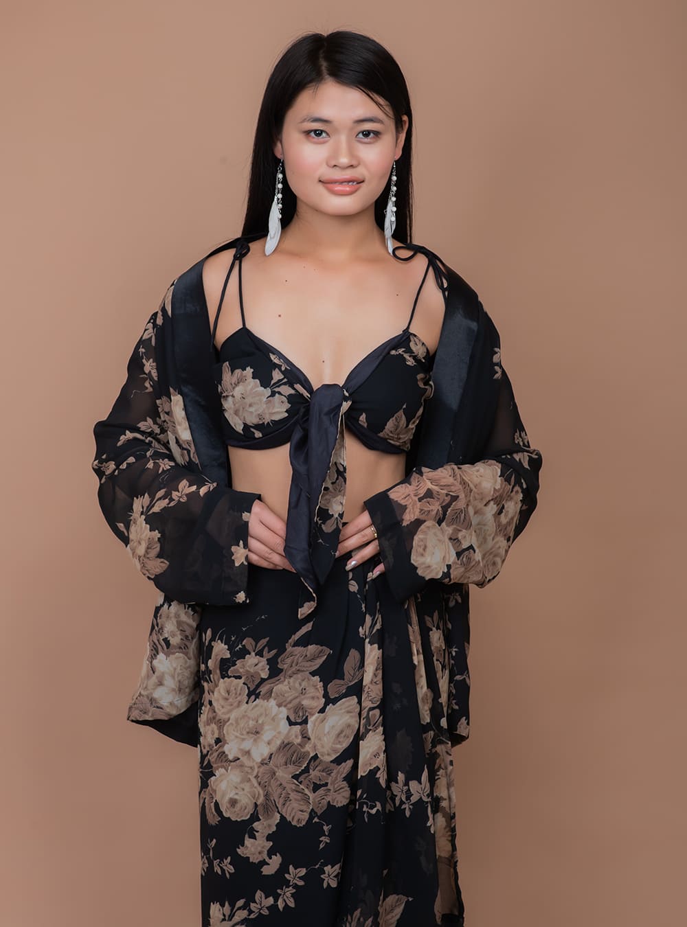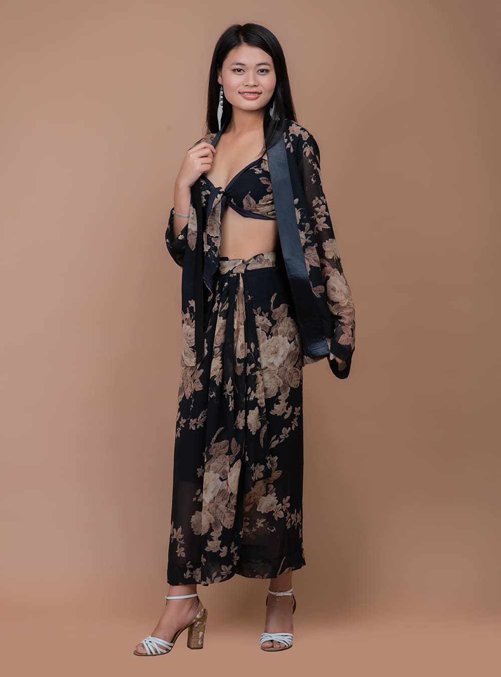 Been dreaming of the white sand beaches and brunch for two or an evening out with friends by the beach. This versatile three piece set features a sarong style skirt with a bikini and a loose flowy jacket. It gives you a oh-so-sexy and stylish from the beach to the bistro in our colorful print with a figure flattering style. Pair it with strappy heels or slip on.
