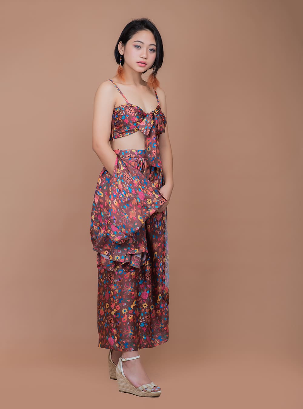 · Sarong style skirt.