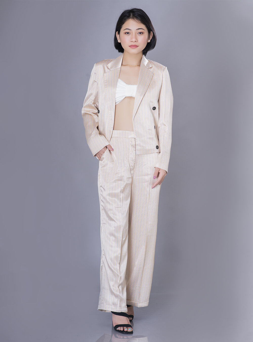 Coordinated Set of Off White Shirt ,Bralette And Short Pant